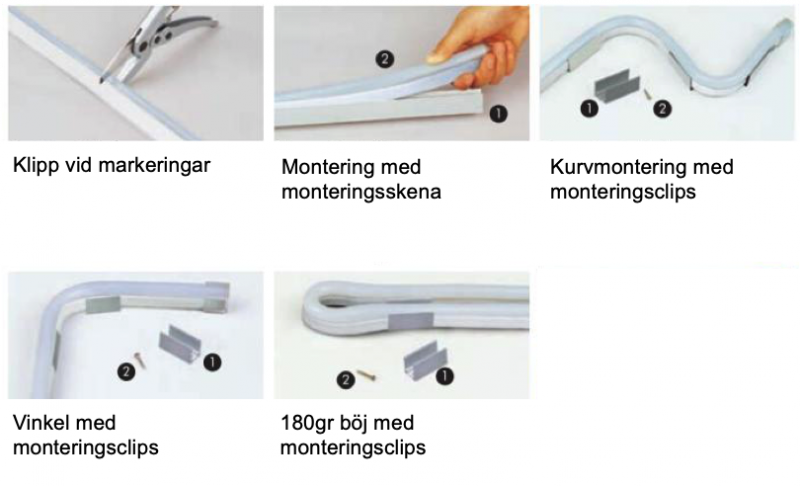 Olika monteringsalternativ för aluminiumprofiler: skruv, dubbelhäftande tejp/magnettejp, clips, infällt
