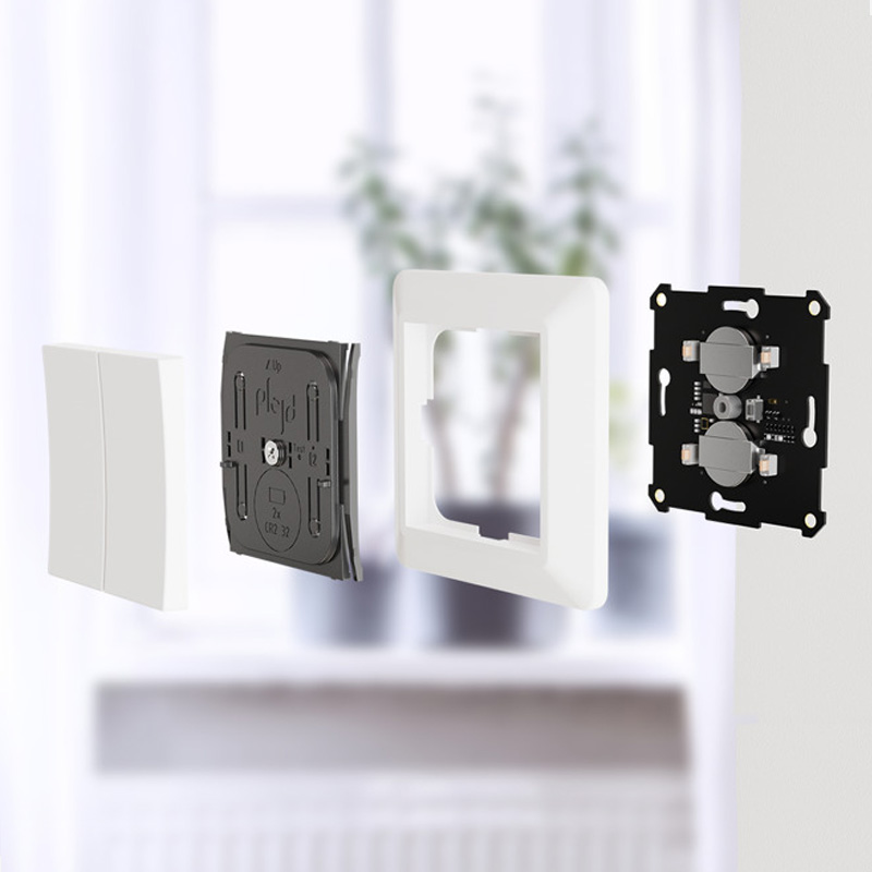 Trådlös strömbrytare/tryckknapp möjliggör trådlös styrning av en eller flera produkter från Plejd, enkelt konfigurerat via Plejd-appen. Strömbrytaren installeras enkelt med dubbelhäftande tejp, skruvar eller fästs i ett vanligt vägguttag.