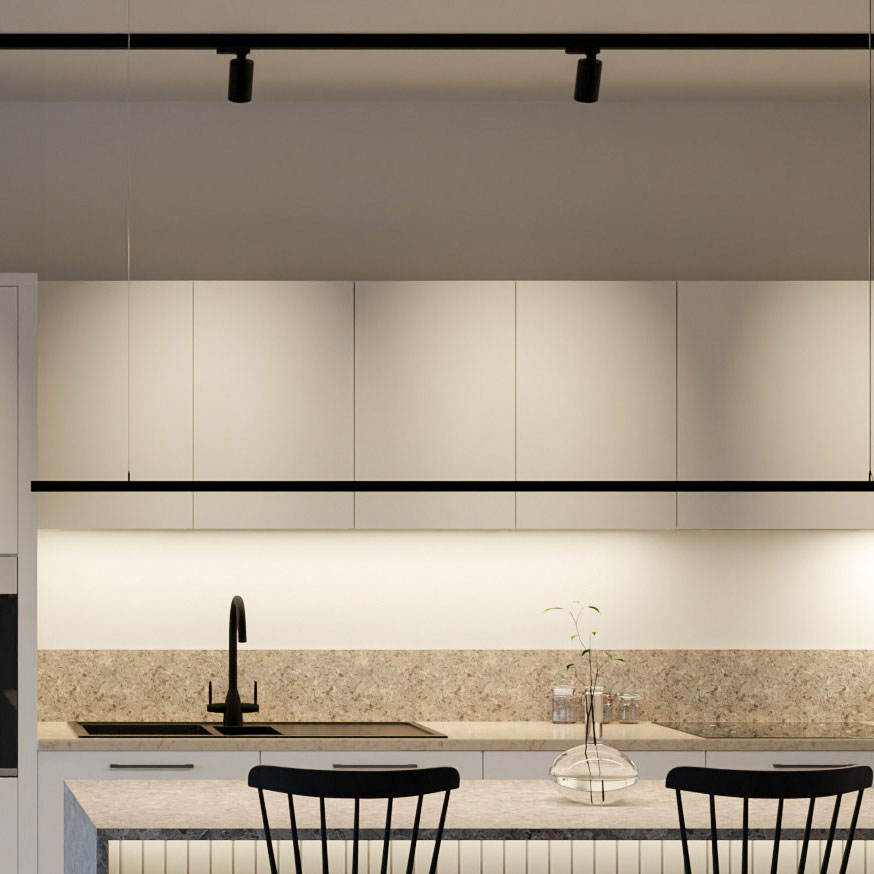 Monteras enkelt på 3-fas belysningsskena