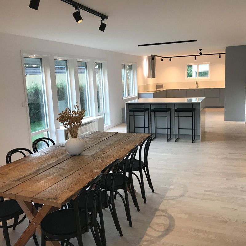 Om ni vill kan ni koppla in två ledningar på skenan till två olika strömbrytare på väggen. Sen kan ni koppla in spotlights på ledning 1 och en pendellampa på ledning 2 och tända, släcka och dimra dessa separat.
