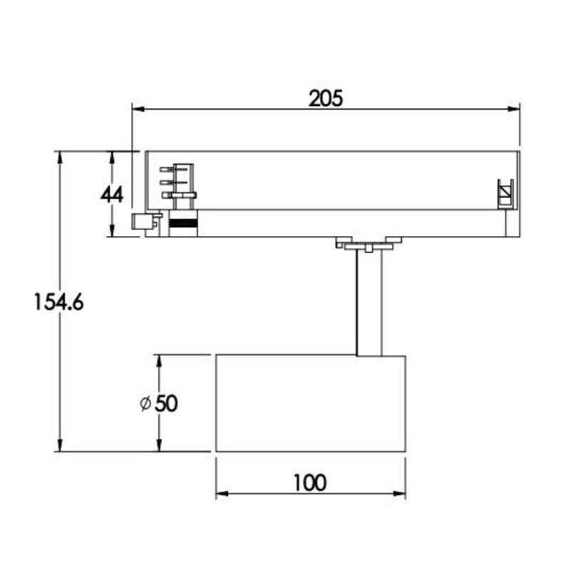 Snygg liten spotlight för skena som ger mycket ljus och är dimbar med vanlig LED-dimring, till exempel Plejd.